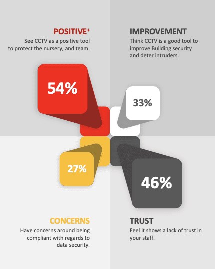 Interestingly after the webinar, 77% of the participants reported that they then felt more positively towards CCTV – this shows the importance of including staff and management in this discussion, not just imposing legislation. We’ve certainly observed a large increase in demand in the last two years from nursery leaders wanting to strengthen their safety monitoring.